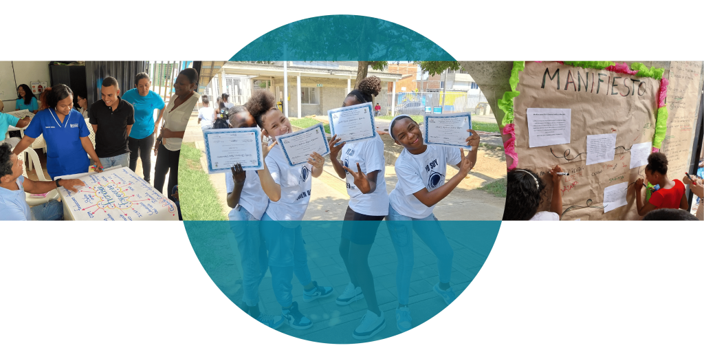 El programa atiende niñas, niños, adolescentes y jóvenes de 9 a 22 años, así como a las familias, quienes viven en condiciones de empobrecimiento y con sus derechos vulnerados. En el proceso de formación, pasan por tres etapas enmarcadas en el modelo de Justicia Restaurativa: Autonomía – donde fortalecen el autoestima y formulan el proyecto de vida; Alteridad – donde reconocen a la otra persona como su Prójimo, como nos enseña la sabiduría Sudafricana del Ubuntu: yo soy porque tú eres; y Empoderamiento político – donde se reconocen como actores de cambio y pilares de una sociedad justa y en paz.